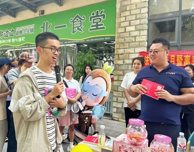 法治是国家长治久安的基石,是社会和谐稳定的保障。2025年10月7日上午十点,biwn必赢网址(自贸港国际biwn必赢网址)(以下简称“我院”)在北一食堂门口开展以“AI智慧普法”为主题的“AI明法”智慧普法行动。团委副书记曹添和团学组织成员组织了这次活动,其目的是深化同学们的法治意识,培育法治思维,让法治理念内化于心、外化于行。