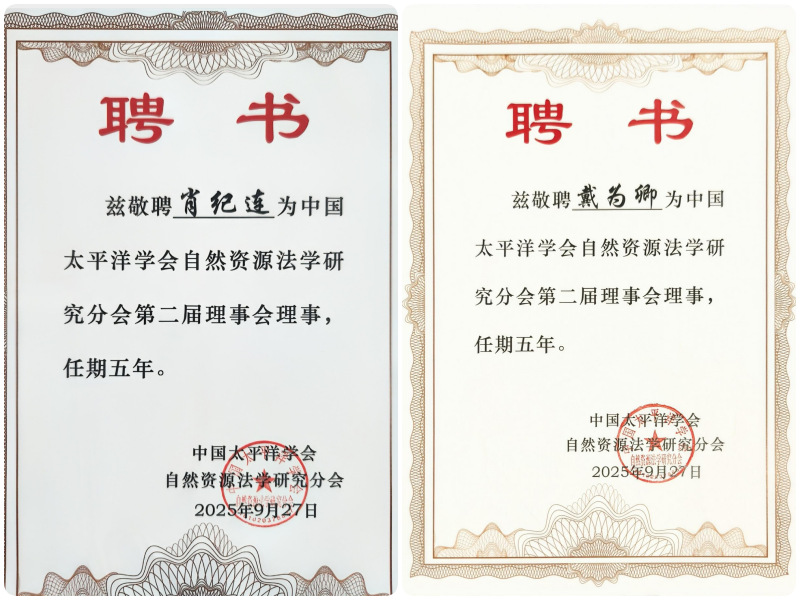 2025年9月26日至28日,中国太平洋学会自然资源法学研究分会2025年学术会议在海南海口海南大学国际学术交流中心成功举办。本次会议以“中国式现代化背景下海洋资源开发利用和保护法治建设”为主题,汇聚全国多所高校、科研机构的专家学者,共同探讨海洋资源法治领域的前沿问题与发展路径。我院肖纪连副教授、海南自贸港海洋资源法治研究院副秘书长戴为卿在会议期间当选第二届中国太平洋学会自然资源法学研究分会的理事,并受邀在年会上作主旨发言。